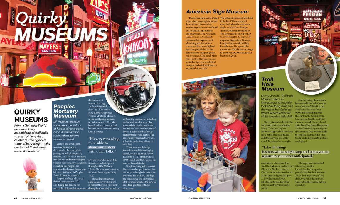 This project was a partnership between Ohio Magazine and my Publication Design course at Ohio University. This assignment simulated real work experience by having me design spreads using existing articles and photography as if I was working in their company's editor/designer role.