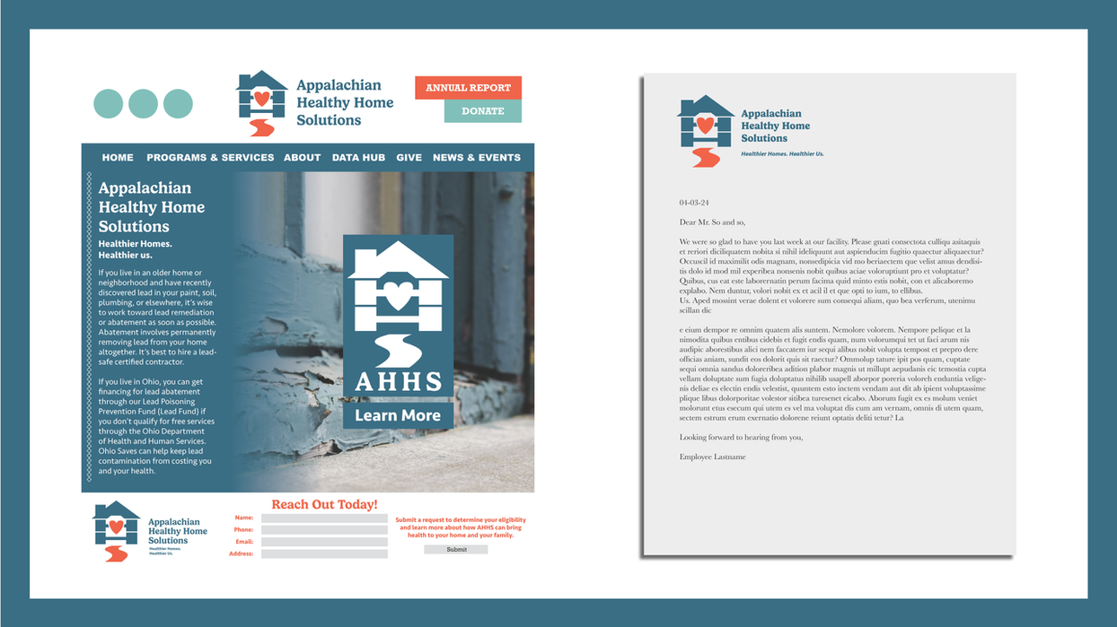 This project was a partnership between a Graphic Design studio class and the Coalition for Ohio and Appalachian Development for their program called Appalachian Healthy Home Solutions. This division was created with grant funding with the goal of providing lead abatement services to individuals in the southeast Ohio area.